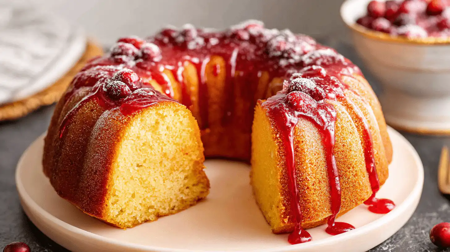 This Cranberry Bundt Cake is golden on the outside, tender and buttery on the inside, and filled with tart cranberries that burst with festive flavor. A simple yet elegant cake perfect for holidays or everyday cozy moments.