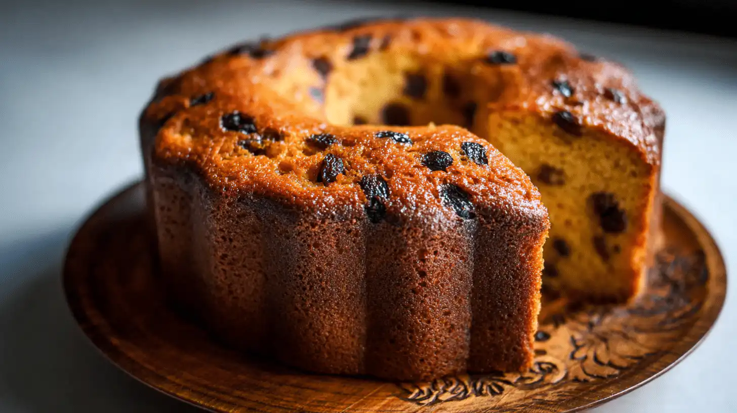 Store your Rum and Raisin Cake in an airtight container at room temperature for up to 3 days or refrigerate for up to 5 days. The flavors deepen over time, becoming even more aromatic. For longer storage, wrap tightly and freeze for up to 2 months. To reheat, warm slices in the microwave for 15–20 seconds or in a low oven (300°F) for 5 minutes to restore that soft, buttery texture.